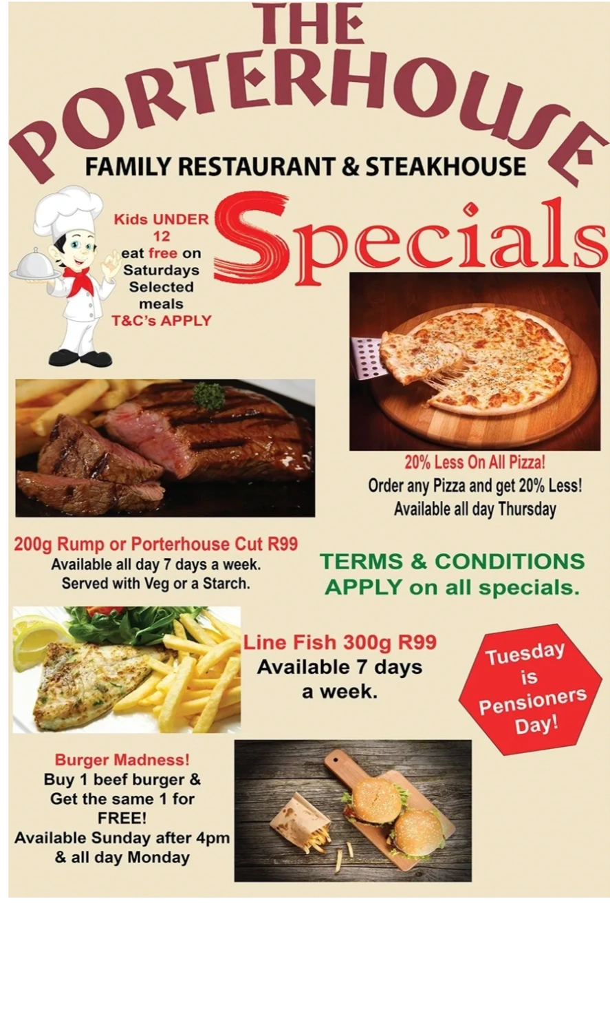 Saturday is a great day to visit a restaurant in Johannesburg and get one of the many restaurant specials on offer. On Mondays the specialty dish is Spaghetti Pomodoro. R60 per night for children 4- 12 years.